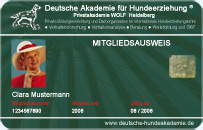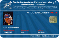 Nach bestandener Prüfung der Intensiv-Seminare 1-6 erhalten Mitglieder kostenlos den Mitgliedsausweis Plus im Scheckkarten-Format. Hiermit kann sich jedes Mitglied als qualifizierter Hundefreund ausweisen.
